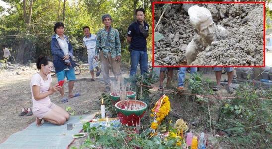 ส่วนกิจการงานที่บ้านก็ราบรื่นดี และได้มีคนมาบอกว่าควรทำบุญที่บ้านบ้าง จึงร่วมกับสามีจัดพิธีทำบุญไปเมื่อวันที่15ม.ค. ที่ผ่านมา พร้อมนำสายสิญจน์ผูกโยงมาจนถึงบริเวณนี้ด้วย หลังจากนั้นจึงได้พบเห็นหลวงปู่ขาวผุดขึ้นมาจากดินอย่างน่าอัศจรรย์